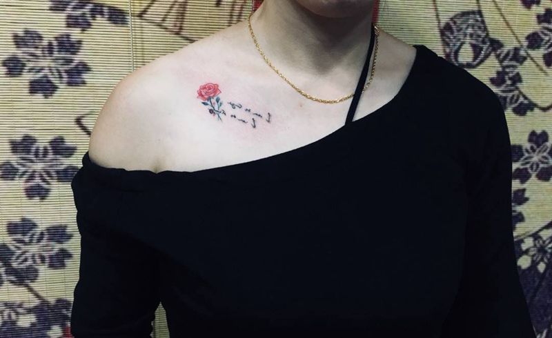 当前位置: 首页 >山东省威海市纹身店-鞭挞刺青纹身图案>锁骨纹身小花花纹身图片_成品肩部胸部清新植物字符纹身图案