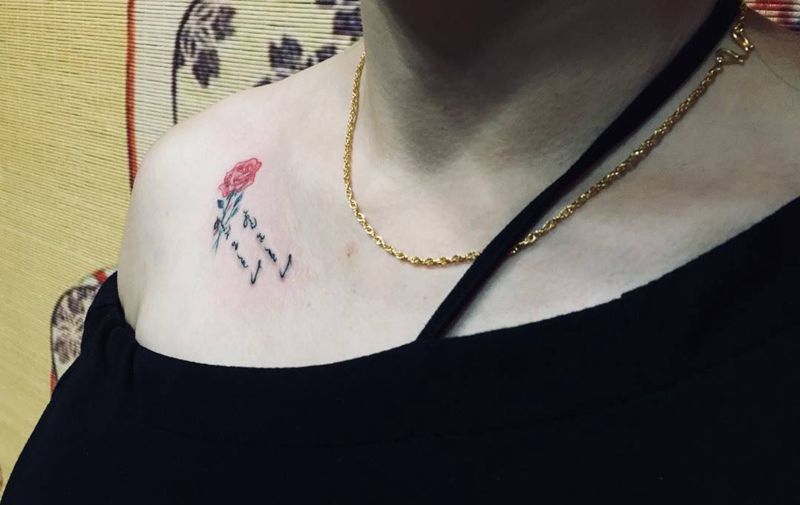 当前位置: 首页 >山东省威海市纹身店-鞭挞刺青纹身图案>锁骨纹身小花花纹身图片_成品肩部胸部清新植物字符纹身图案