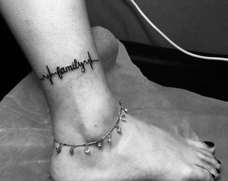 脚脖子纹身family纹身图片_成品脚部习俗清新字符几何纹身图案