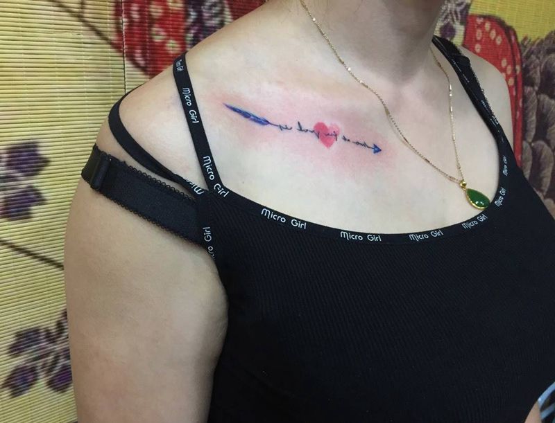 当前位置: 首页 >山东省威海市纹身店-鞭挞刺青纹身图案>锁骨纹身羽毛箭纹身图片_成品肩部胸部清新字符静物纹身图案