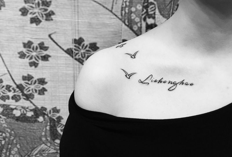清新锁骨2纹身图片_成品颈部胸部习俗清新字符动物纹身图案