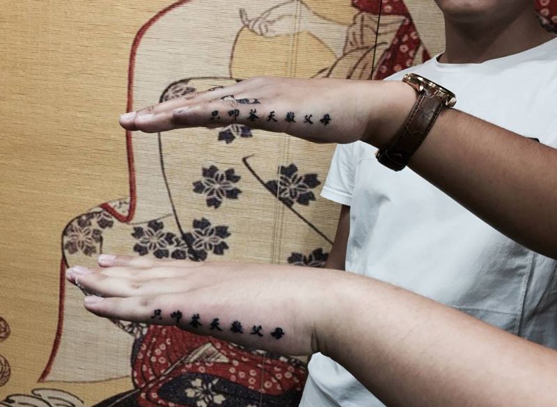 当前位置: 首页 >山东省威海市纹身店-鞭挞刺青纹身图案>手侧纹身纹身图片_成品手部传统字符纹身图案