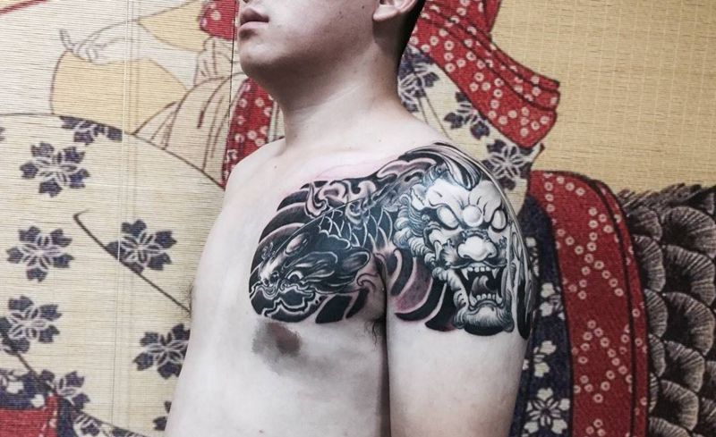 接半甲,待续纹身图片_成品肩部胸部手臂传统动物鬼神纹身图案