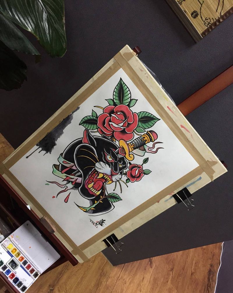 当前位置: 首页 >山东省威海市纹身店-鞭挞刺青纹身图案>old school黑豹纹身图片_手稿原创动物植物欧美纹身图案