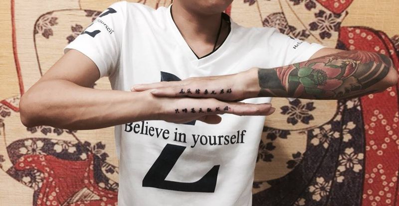 手侧纹字纹身图片_成品手部习俗字符纹身图案