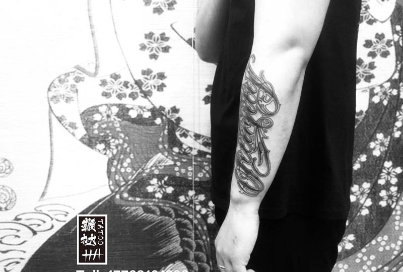 奇卡诺花体两个月后前来复查纹身图片_手臂花体字纹身图案