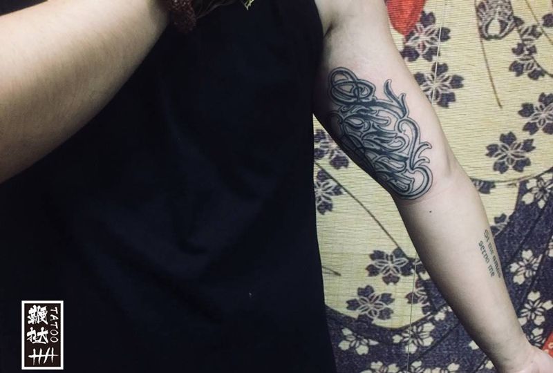 奇卡诺花体两个月后前来复查纹身图片_手臂花体字纹身图案