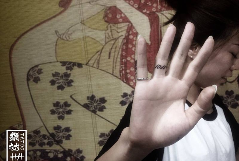 当前位置: 首页 >山东省威海市纹身店-鞭挞刺青纹身图案>做个小戒指纹身图片_手部花体字纹身图案