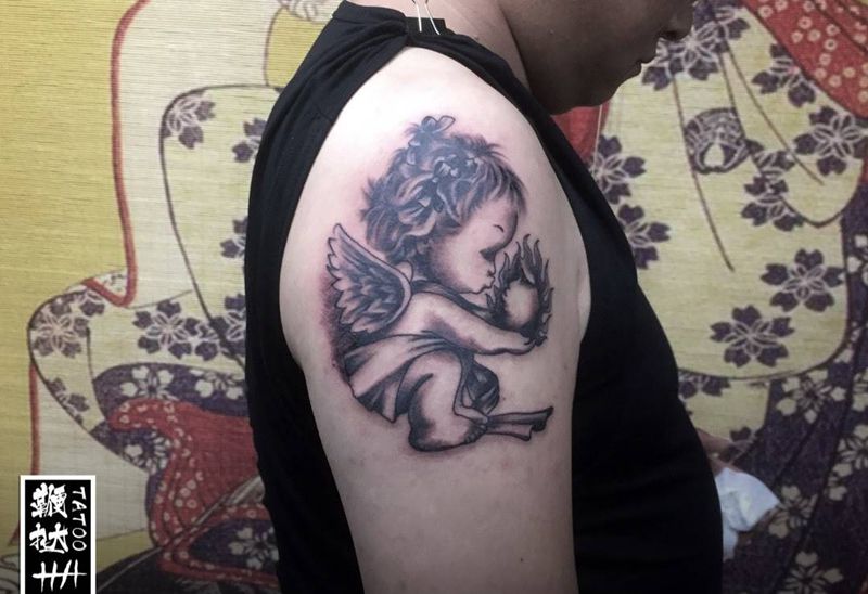 为女儿做的纹身[嘿哈]纹身图片_手臂欧美写实小天使纹身图案