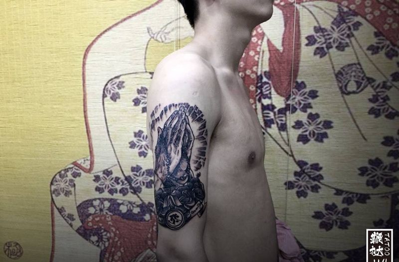 当前位置: 首页 >山东省威海市纹身店-鞭挞刺青纹身图案>祈祷之手纹身图片_手臂欧美写实祈祷之手纹身图案