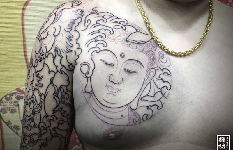 当前位置: 首页 >山东省威海市纹身店-鞭挞刺青纹身图案>收工啦,唐狮+佛陀走线完成~纹身图片