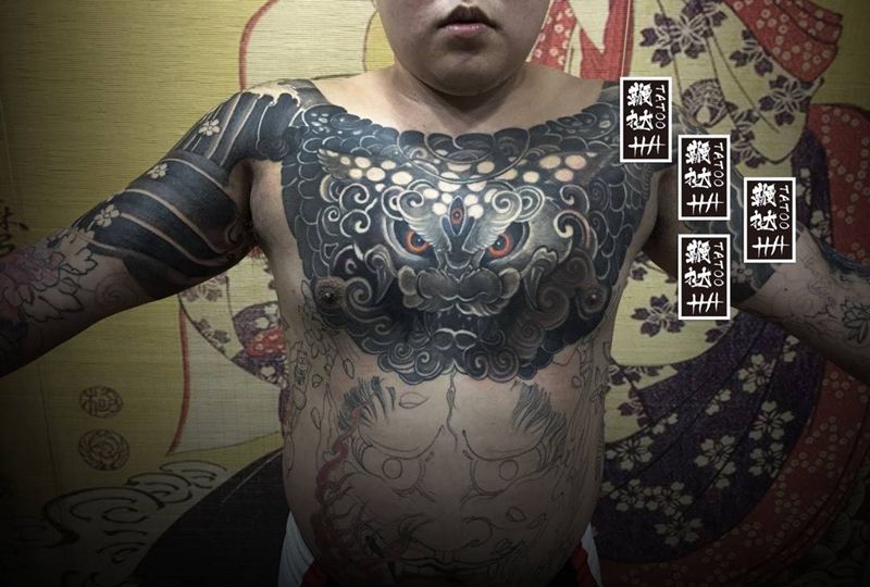 • 黑灰满背纹身图案