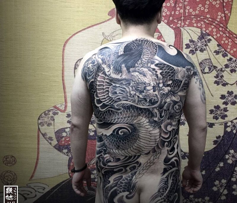 • T云龙九郎纹身图片_背部老传统云龙九郎纹身图案