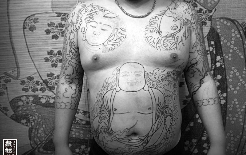 近日工作纹身图片_背部手臂老传统新传统纹身图案