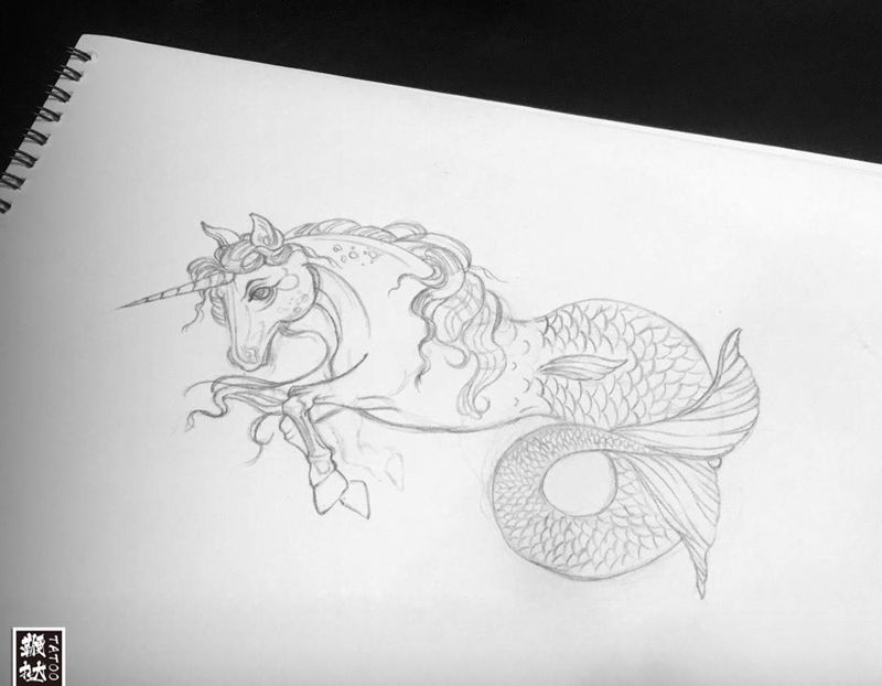 当前位置: 首页 >山东省威海市纹身店-鞭挞刺青纹身图案>私人订制:马头鱼尾兽,下周六上身~纹身图片_胸部肩部New School马头鱼尾怪纹身图案
