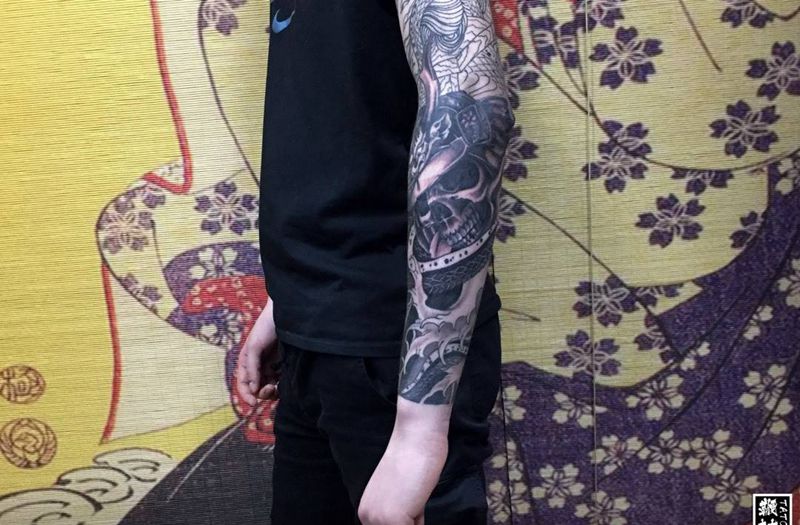 当前位置: 首页 >山东省威海市纹身店-鞭挞刺青纹身图案>老日式半甲蛇臂进度2。纹身图片_手臂老传统纹身图案