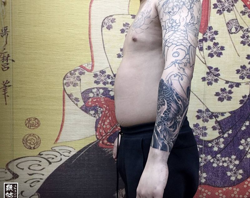 进度止此,春节后继续。纹身图片_手臂新传统老传统鱼纹身图案