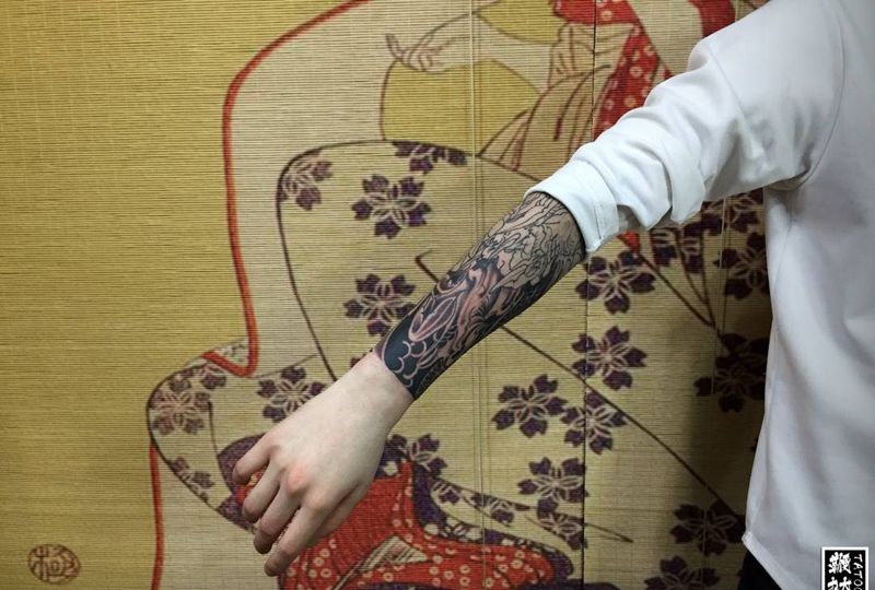 当前位置: 首页 >山东省威海市纹身店-鞭挞刺青纹身图案>半甲龙臂进度1纹身图片_手臂新传统龙纹身图案