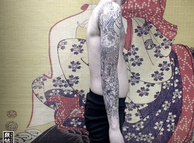 当前位置: 首页 >山东省威海市纹身店-鞭挞刺青纹身图案>龙蛇半甲花臂,春节后继续。纹身图片_手臂胸部老传统新传统龙蛇纹身图案