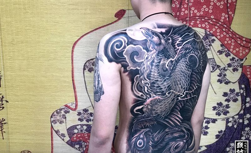 黑灰满背纹身图案
