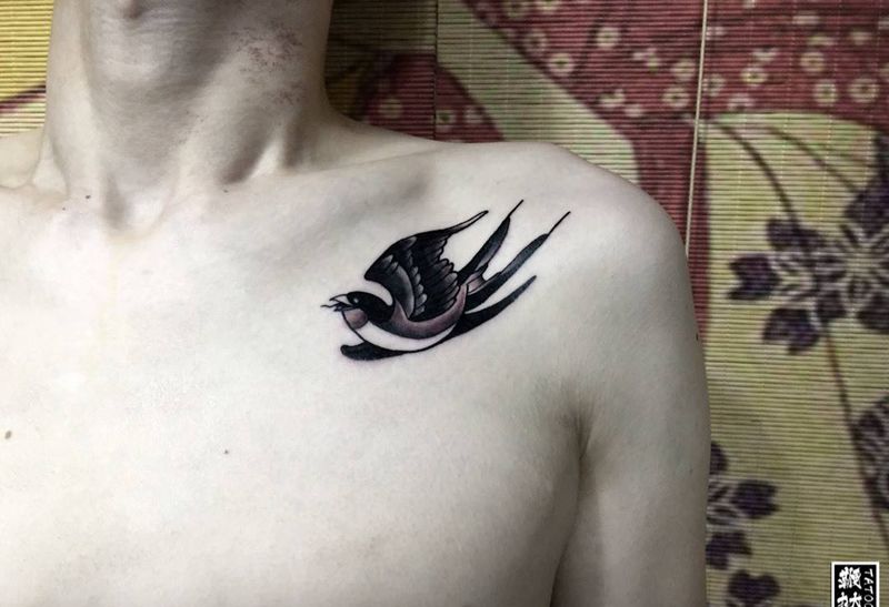 当前位置: 首页 >山东省威海市纹身店-鞭挞刺青纹身图案>双肩燕纹身图片_肩部Old School燕子纹身图案