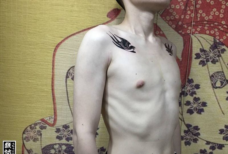 当前位置: 首页 >山东省威海市纹身店-鞭挞刺青纹身图案>双肩燕纹身图片_肩部Old School燕子纹身图案