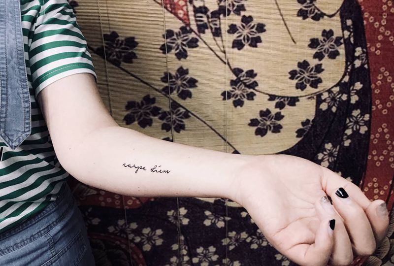 当前位置: 首页 >山东省威海市纹身店-鞭挞刺青纹身图案>及时行乐纹身图片_手臂纹身图案