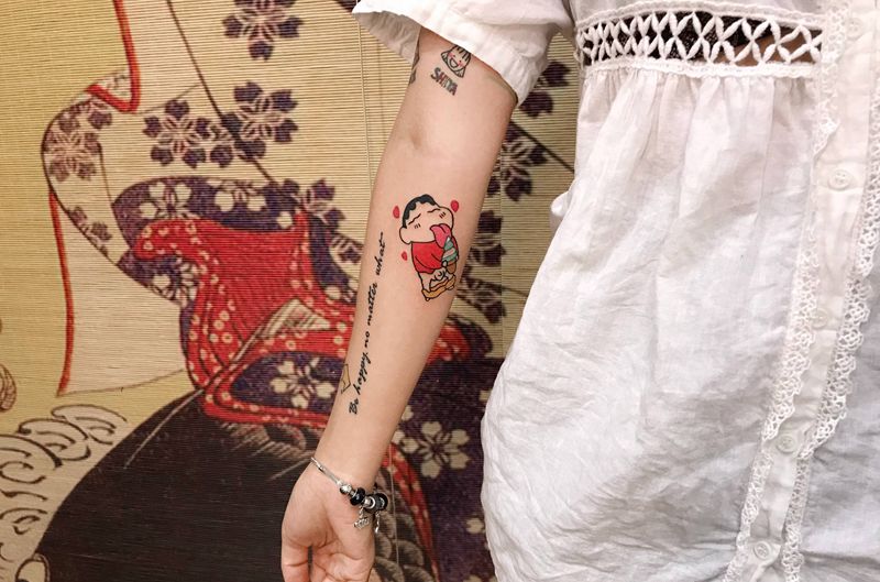 一个带声音的纹身[耶]纹身图片_手臂Old School蜡笔小新纹身图案