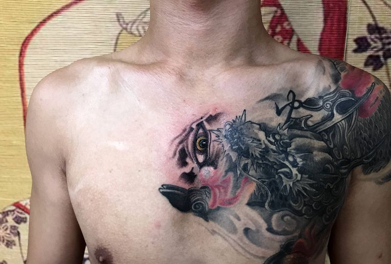 原订制的麒麟恢复后加订一只眼睛纹身图片_胸部新传统眼睛纹身图案