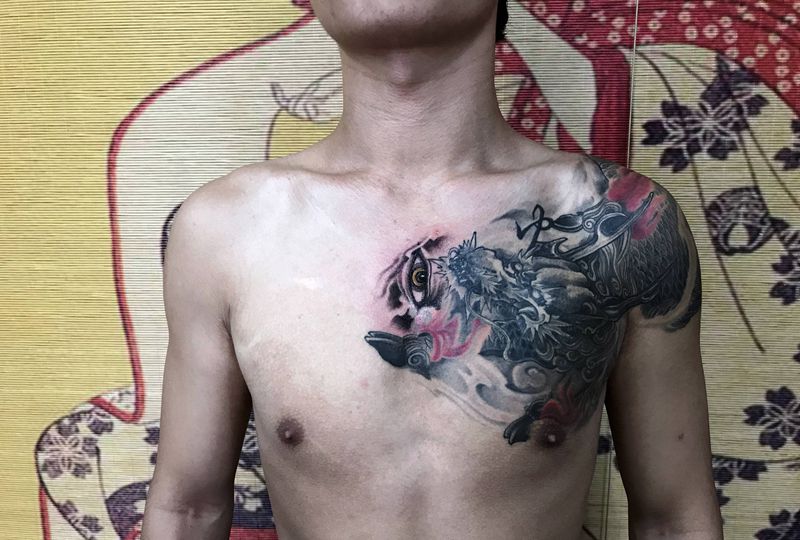 原订制的麒麟恢复后加订一只眼睛纹身图片_胸部新传统眼睛纹身图案