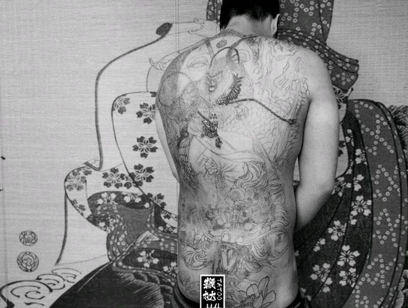 黑灰满背纹身图案