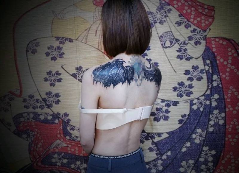 黑灰满背纹身图案