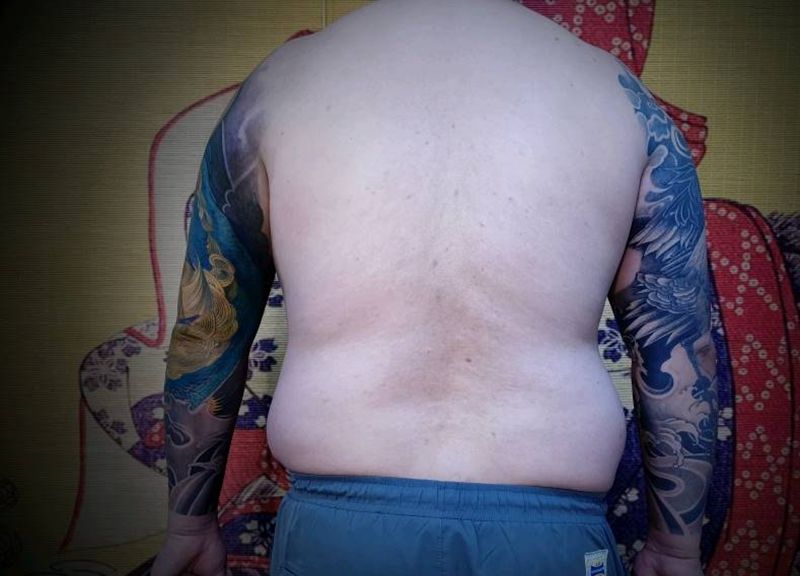 黑灰满背纹身图案