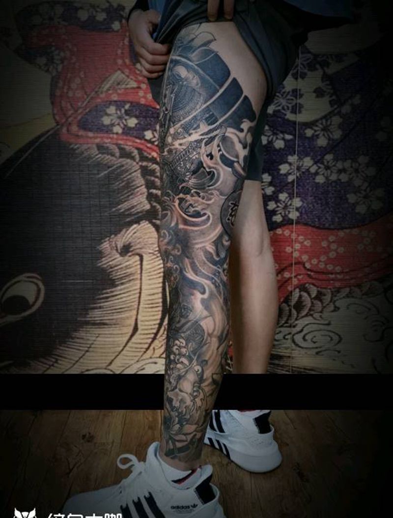 黑灰满背纹身图案