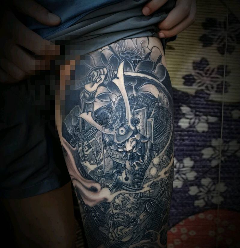 黑灰满背纹身图案