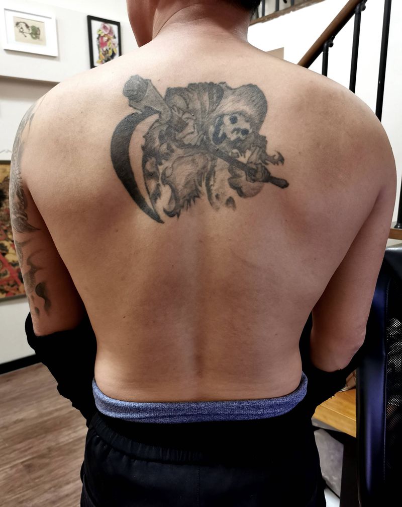 用无常遮盖死神,连续三次纹身图片_背部新传统纹身图案