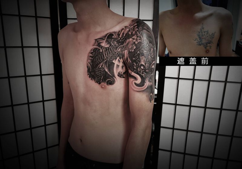 黑灰满背纹身图案