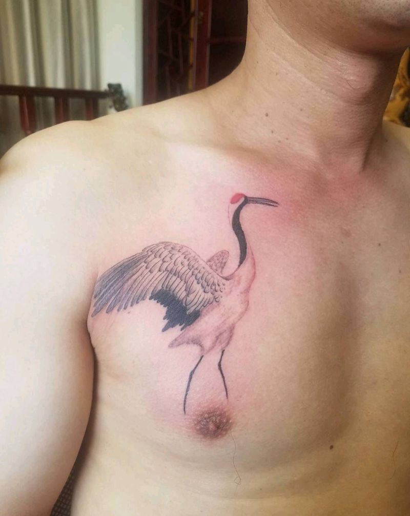 当前位置: 首页 >山东省威海市纹身店-梵天彫和纹身工作室纹身图案>鹤纹身图片_胸部水墨水彩纹身图案