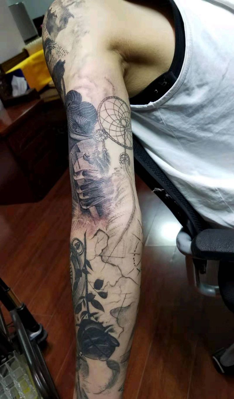 当前位置: 首页 >山东省威海市纹身店-梵天彫和纹身工作室纹身图案>梦想和未来纹身图片_手臂肩部欧美写实水墨纹身图案