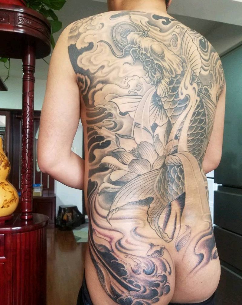 鲤鱼纹身图片_背部臀部新传统纹身图案