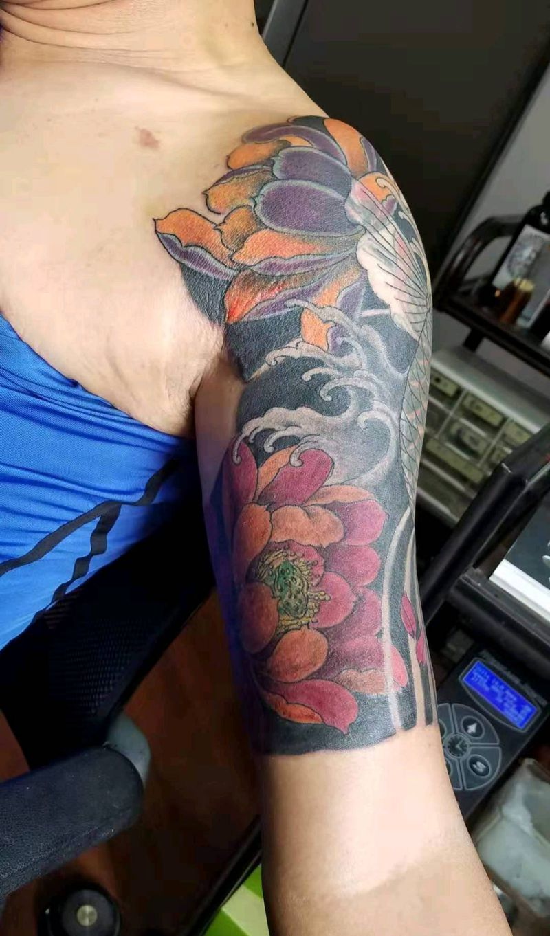 一组15张莲花纹身手