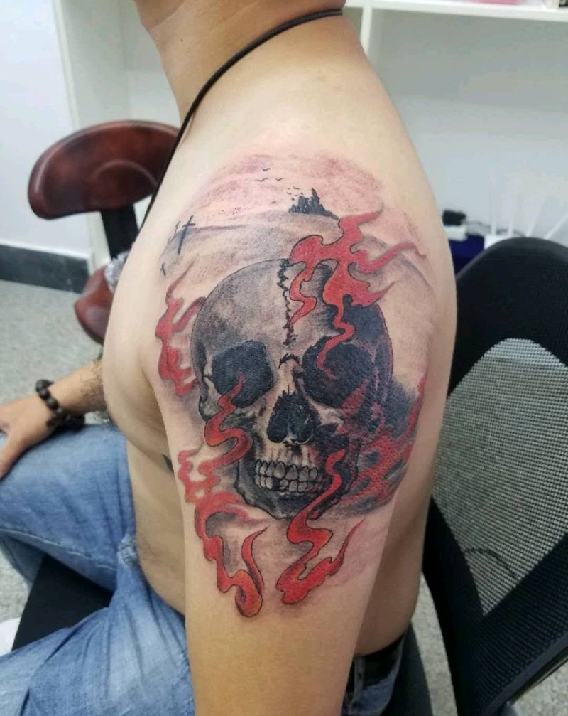当前位置: 首页 >山东省威海市纹身店-梵天彫和纹身工作室纹身图案>修改纹身图片_肩部欧美写实纹身图案