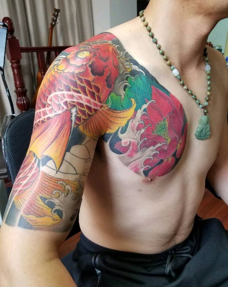 半甲魚纹身图片_手臂胸部新传统纹身图案