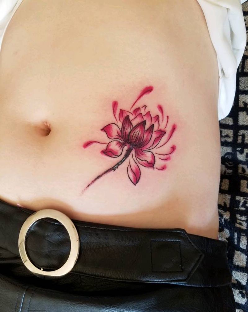 • 时尚性感的腹部莲花纹身图案