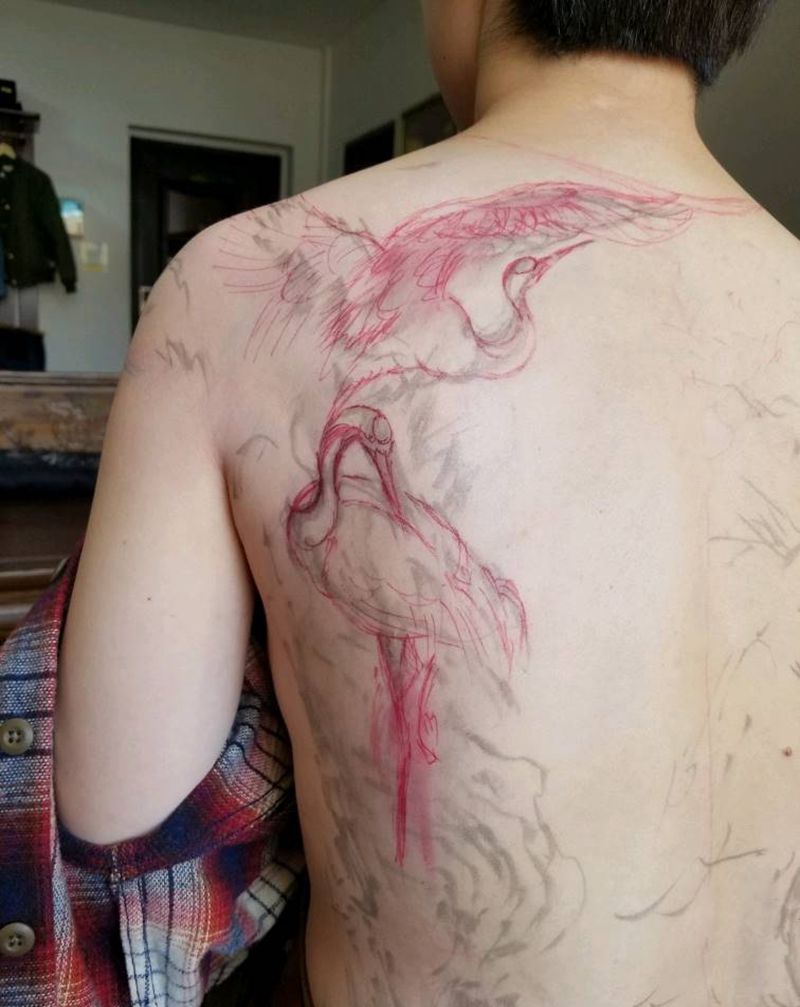 满背鹤纹身图片