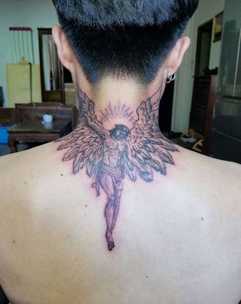 基督纹身图片_颈部欧美写实纹身图案