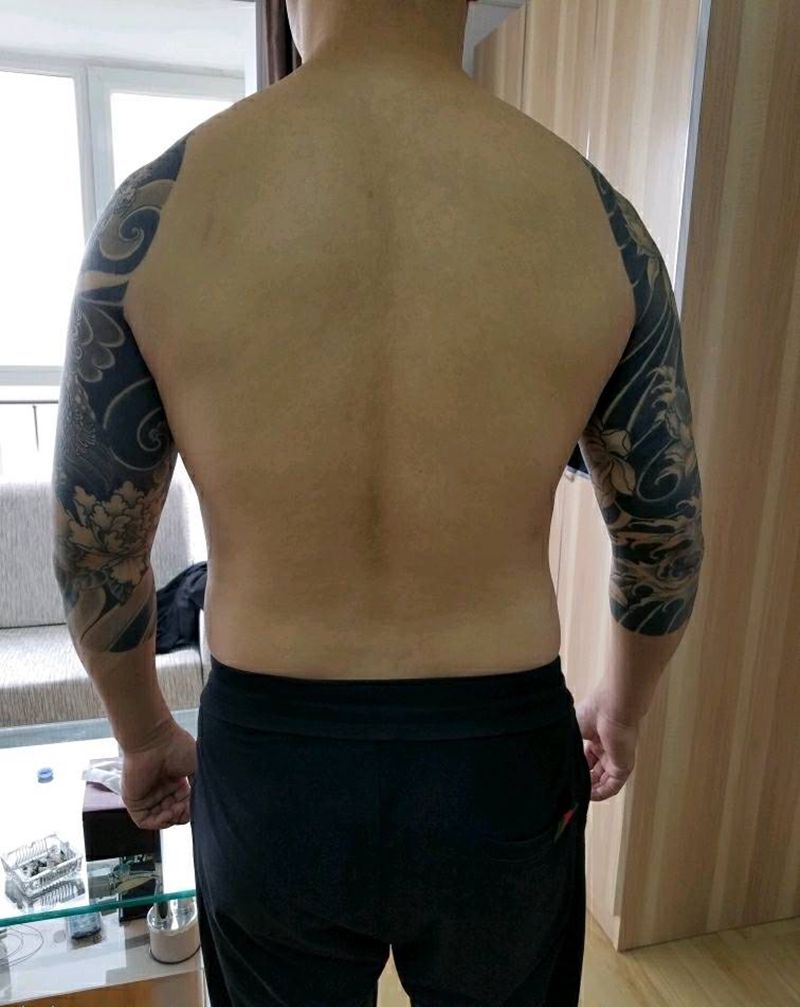 • 黑灰满背纹身图案
