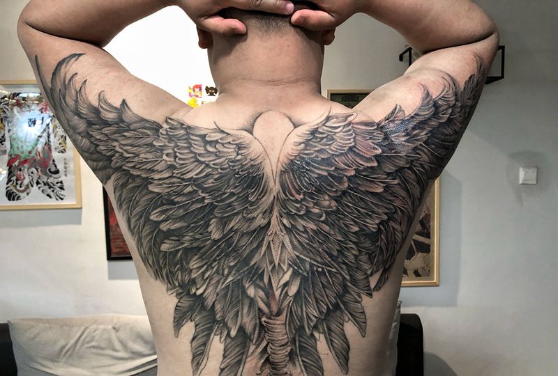 当前位置: 首页 >山东省日照市纹身店-人皮商刺青纹身图案>遮盖纹身图片_背部欧美写实纹身图案