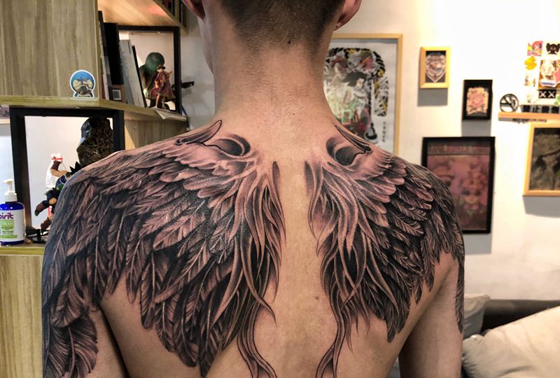 当前位置: 首页 >山东省日照市纹身店-人皮商刺青纹身图案>涅槃纹身图片_背部欧美写实纹身图案