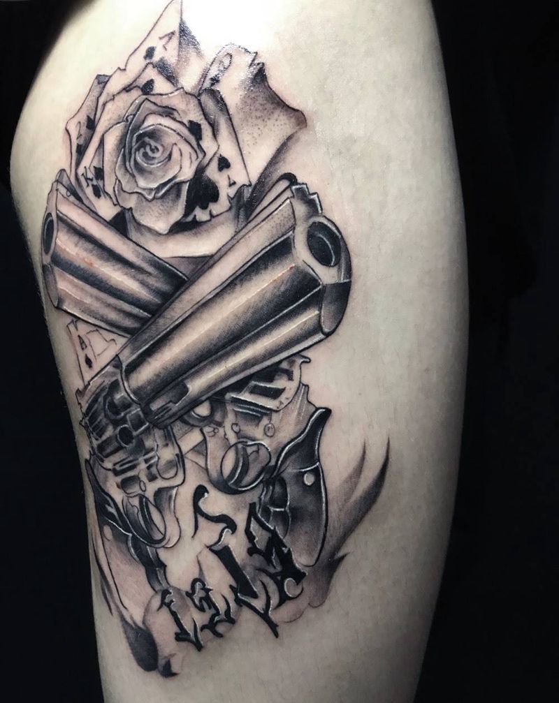 当前位置: 首页 >山东省日照市纹身店-人皮商刺青纹身图案>枪花纹身图片